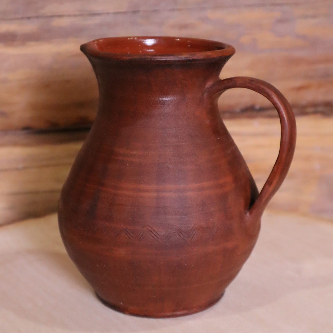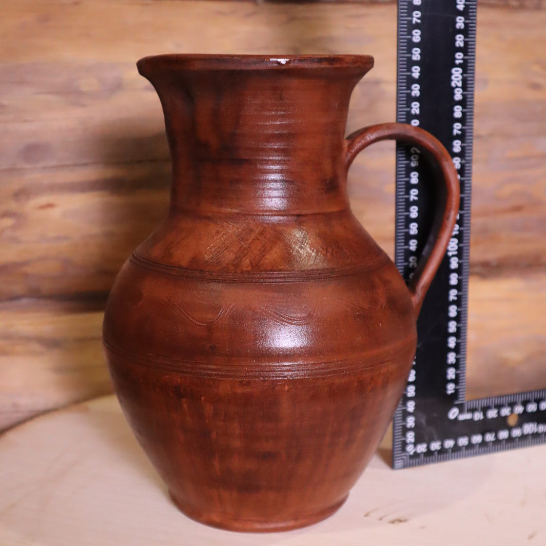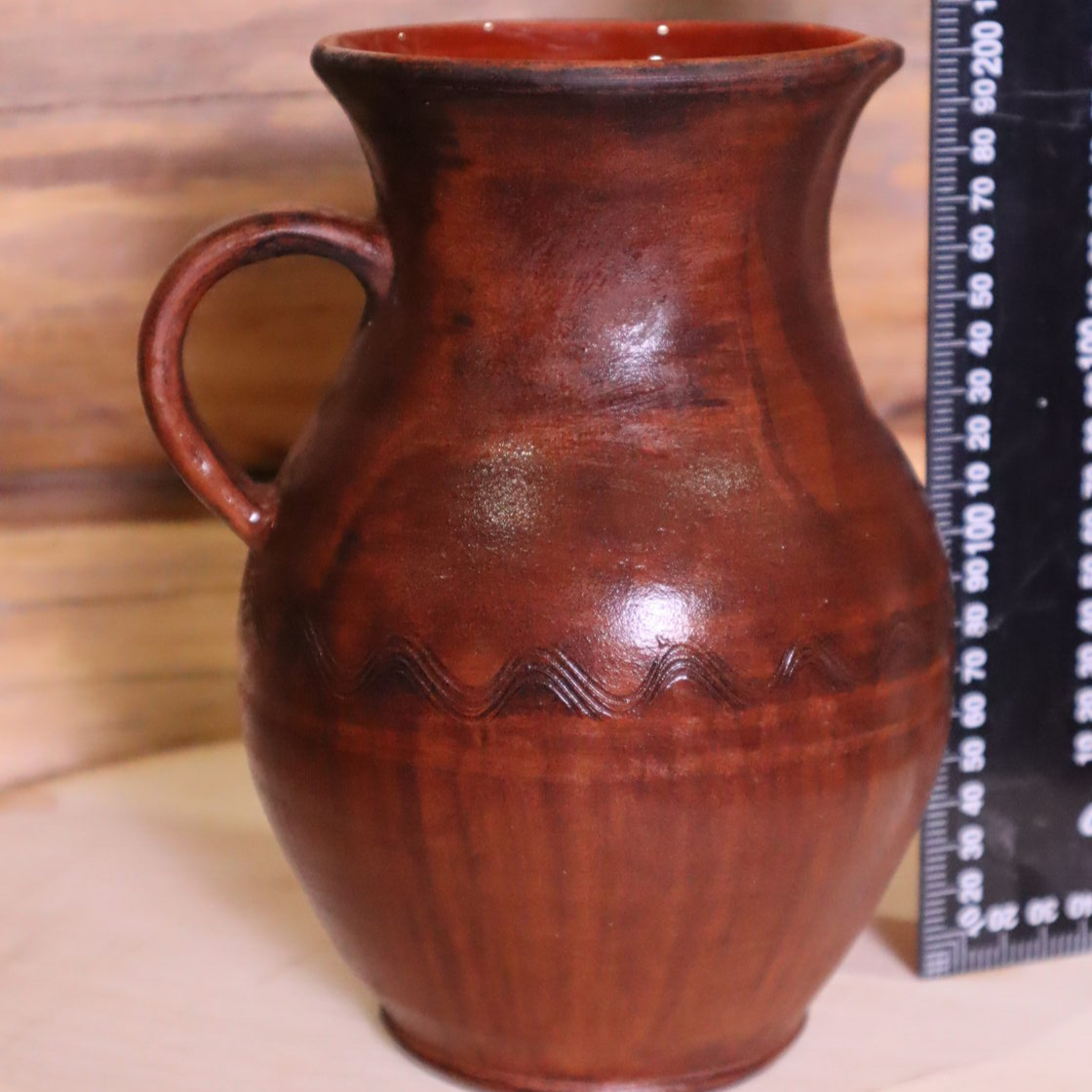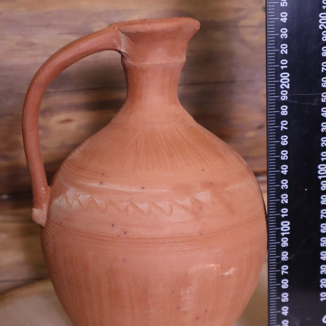 Выполнен из красной глины, внутри глазурь, снаружи лощение, молочение, вощение