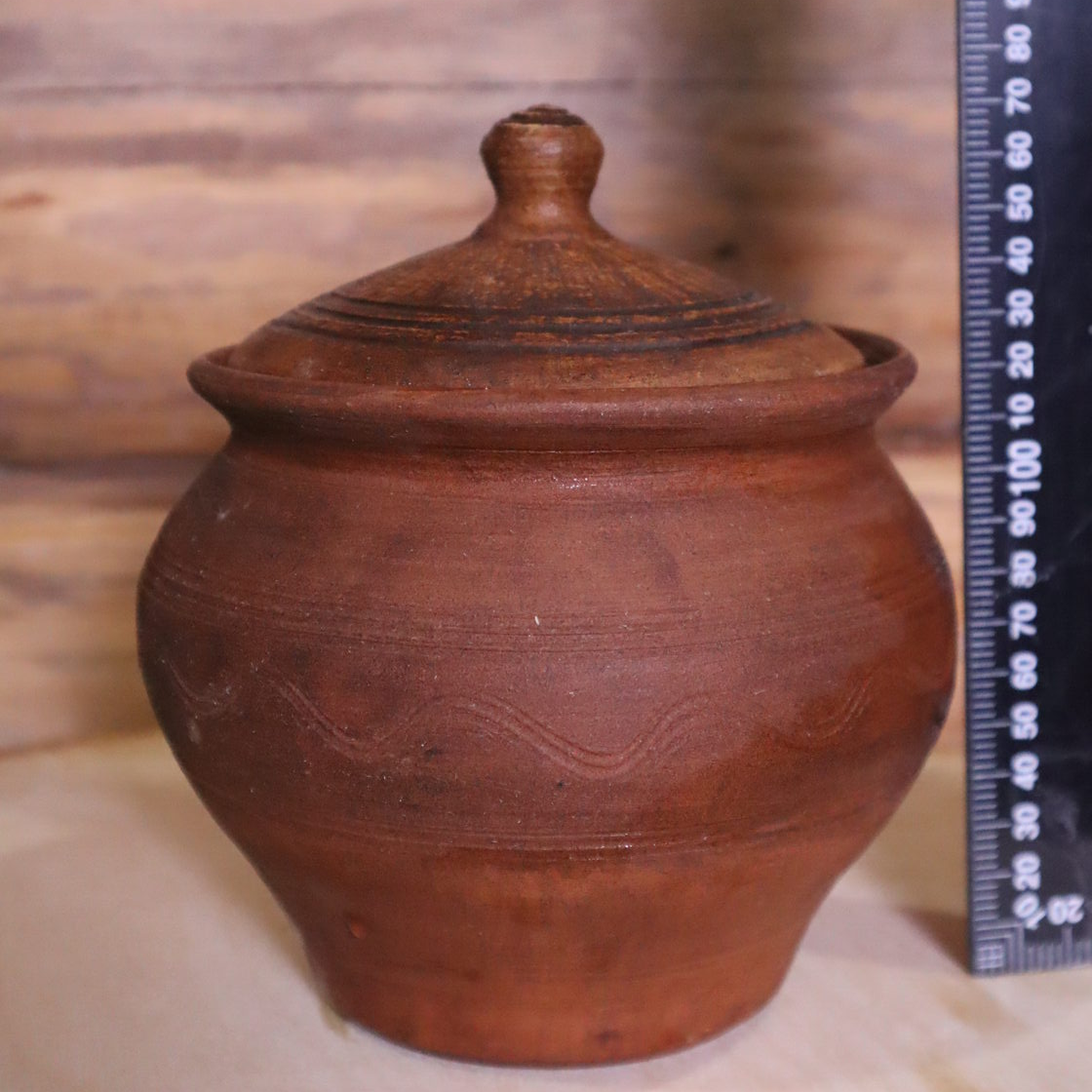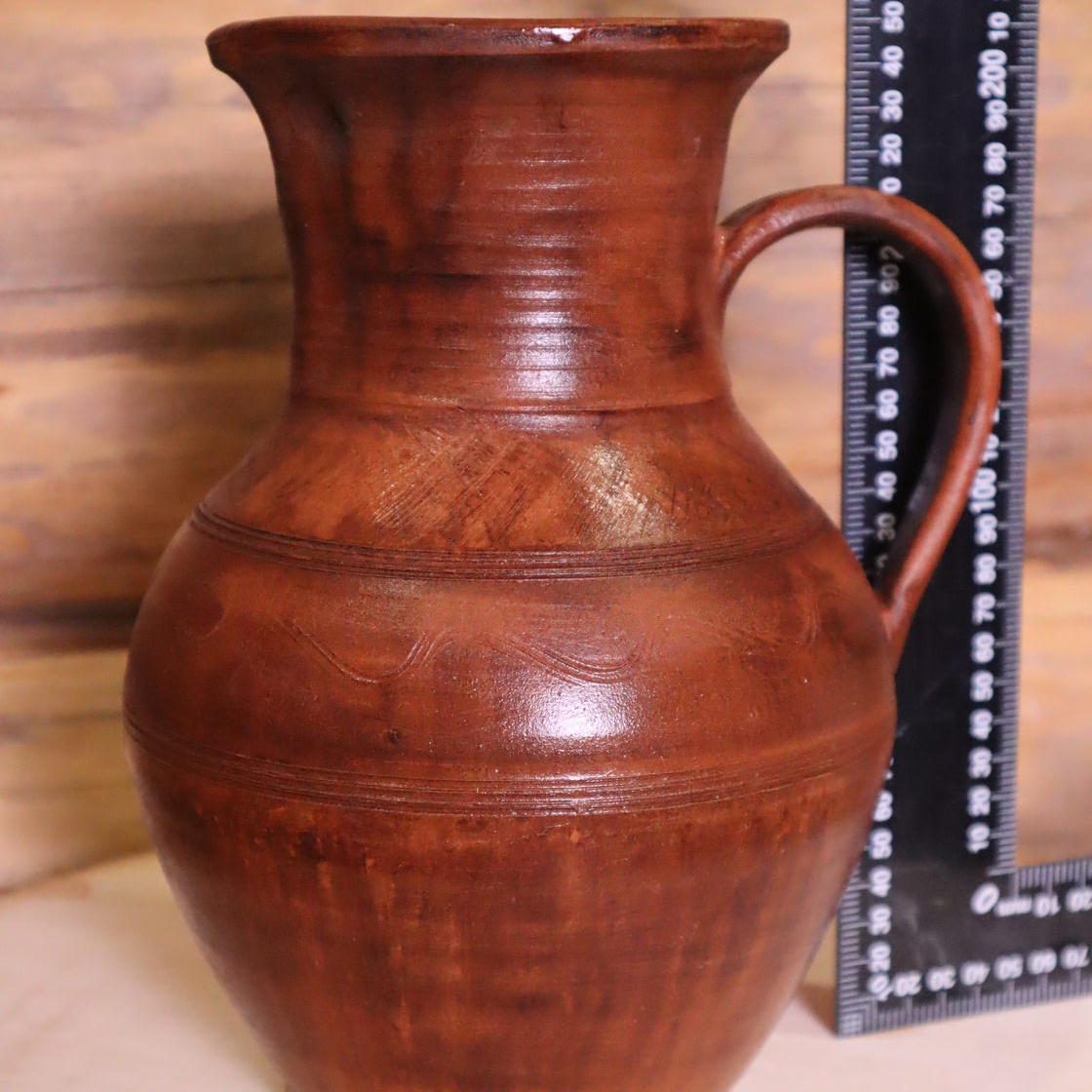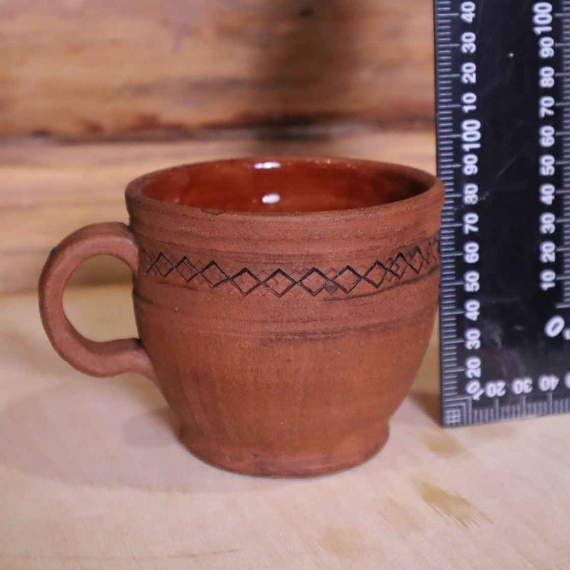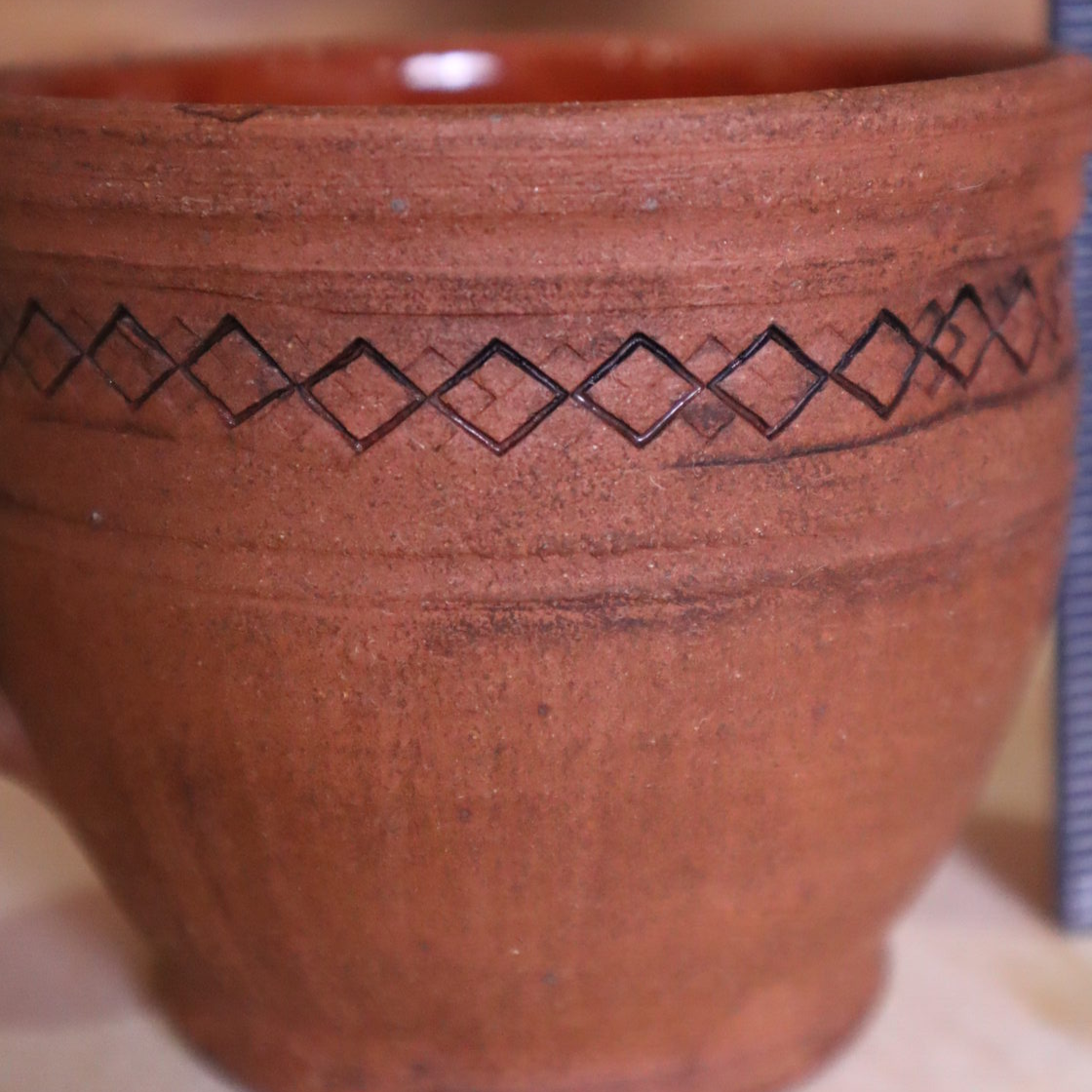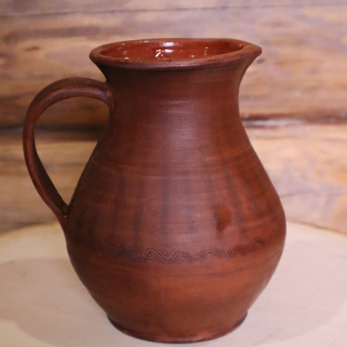 Выполнен из красной глины, внутри глазурь, снаружи лощение, молочение, вощение