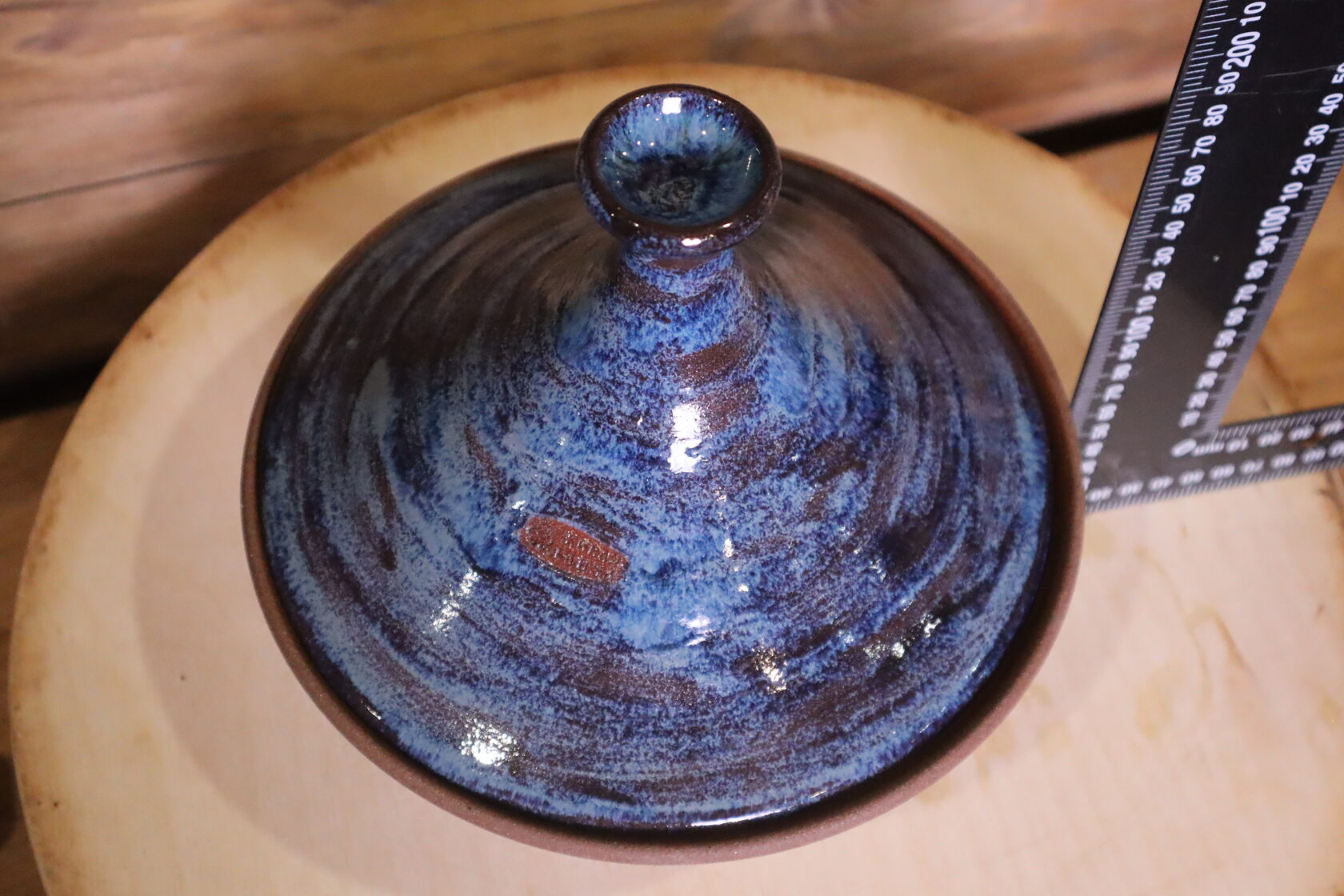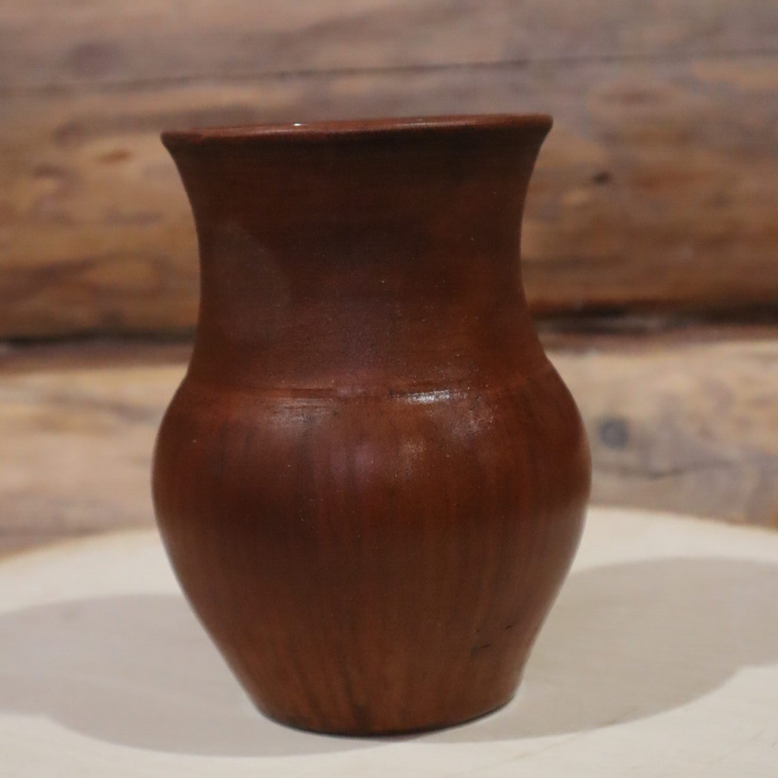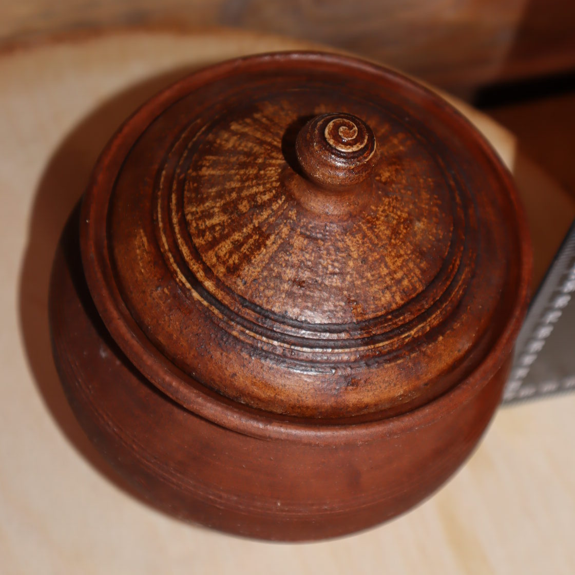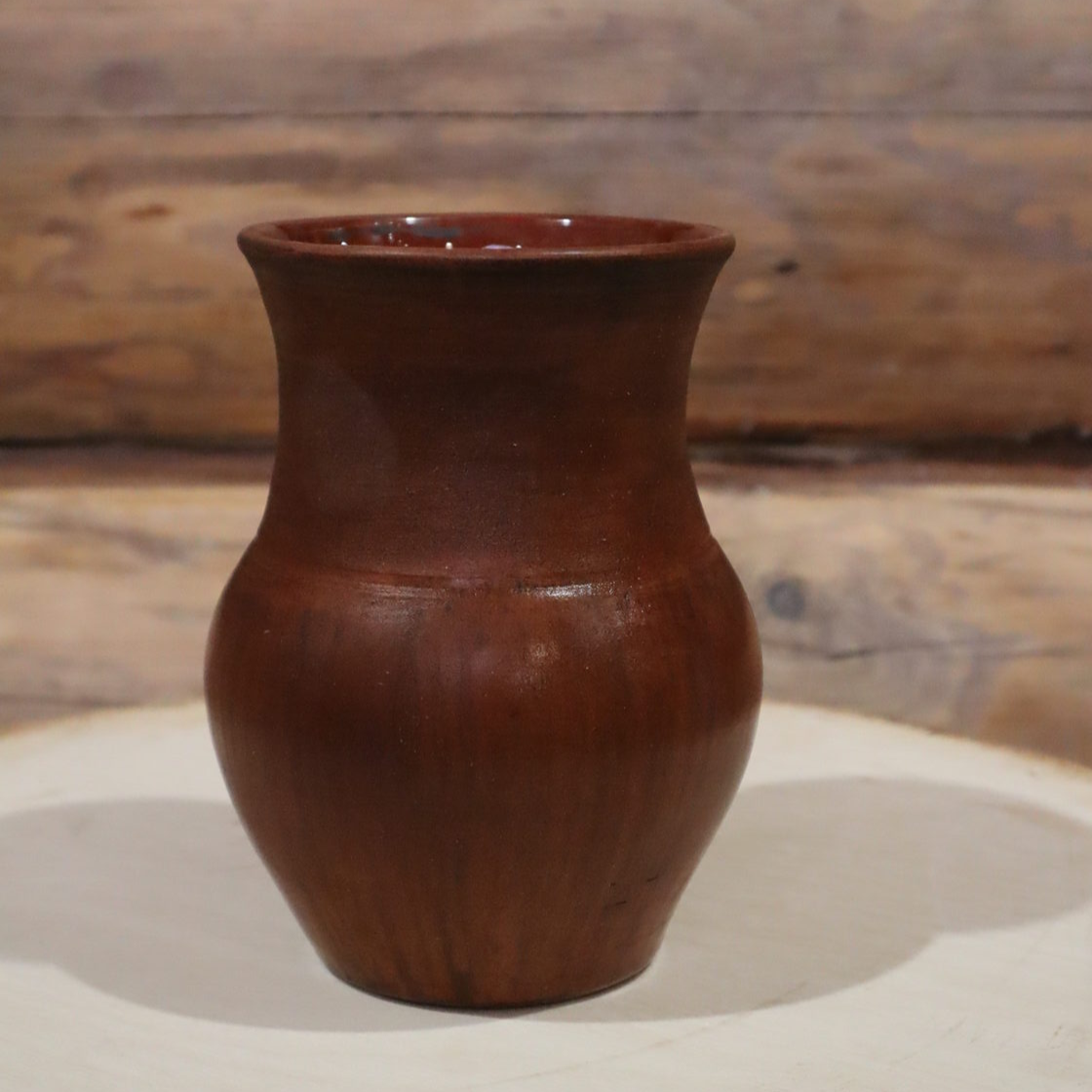 Выполнен из красной глины, внутри глазурь, снаружи лощение, молочение, вощение